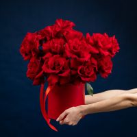 15 французских роз в шляпной коробке (сорт Эксплорер)
