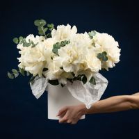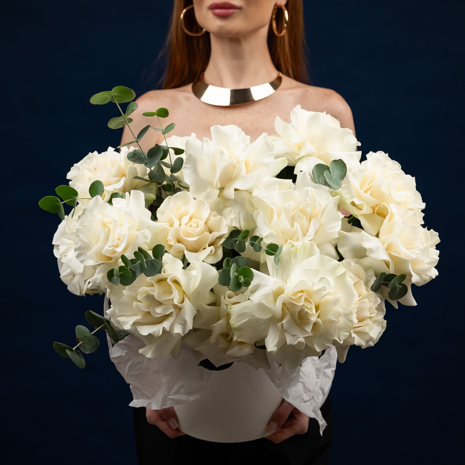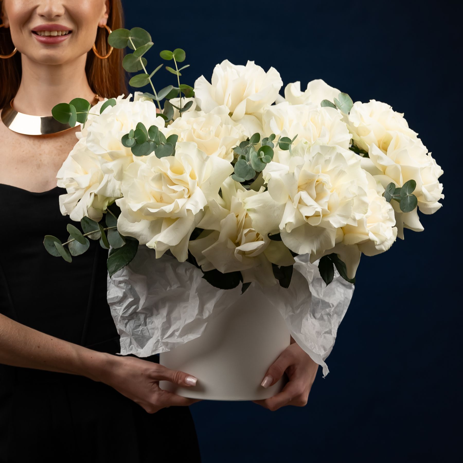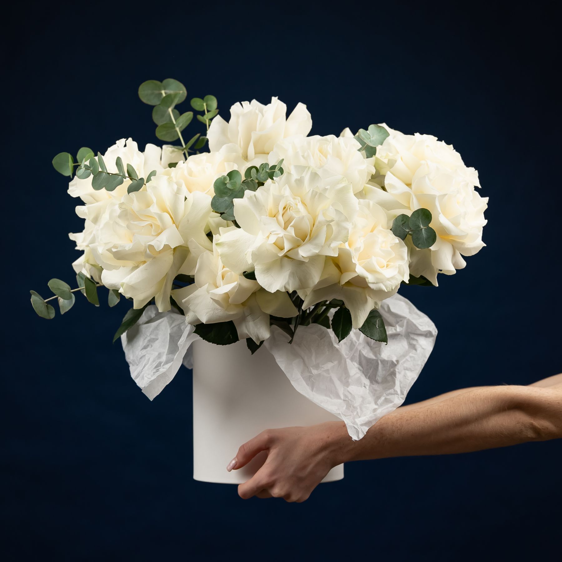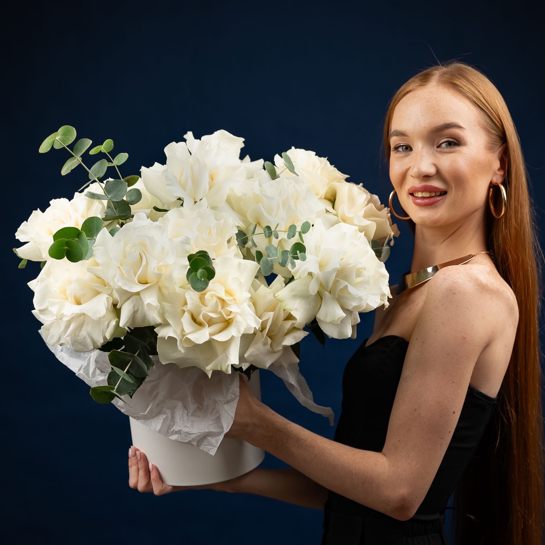 15 французских роз в шляпной коробке (сорт Мондиаль)