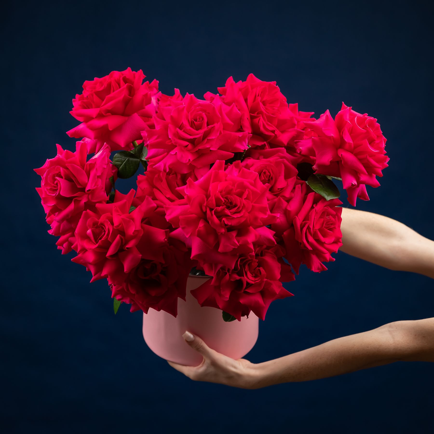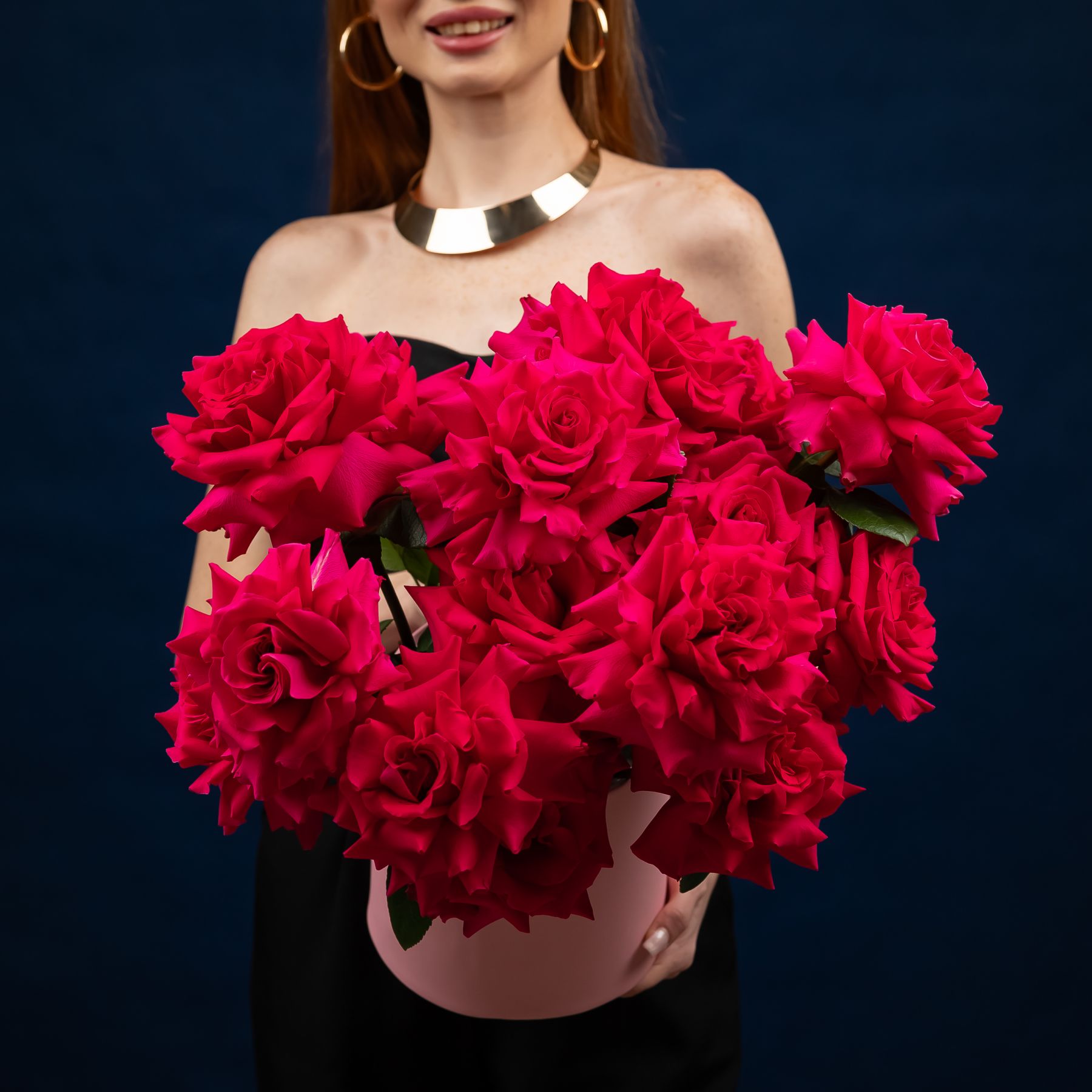 15 французских роз в шляпной коробке (сорт Мондиаль)
