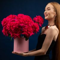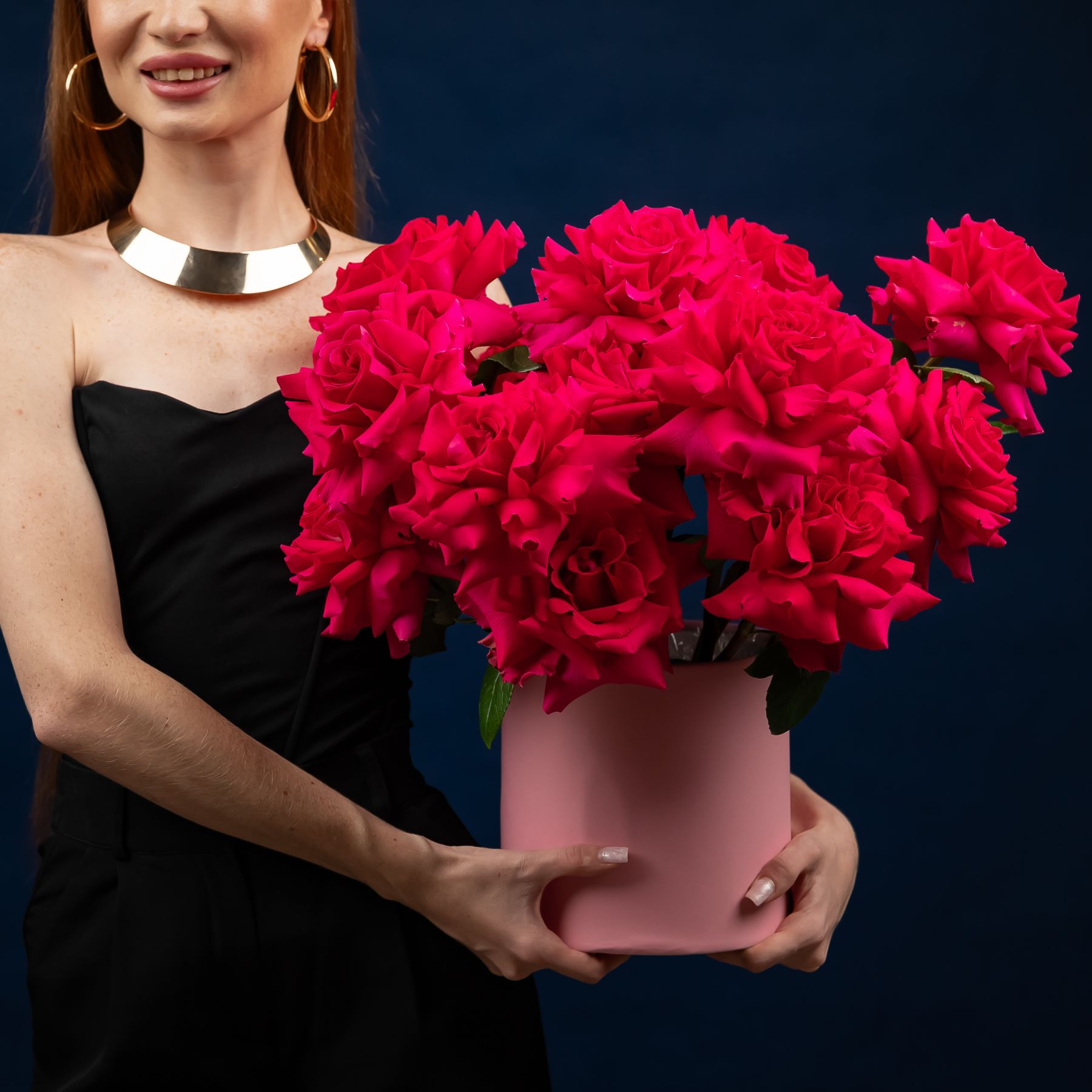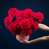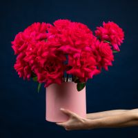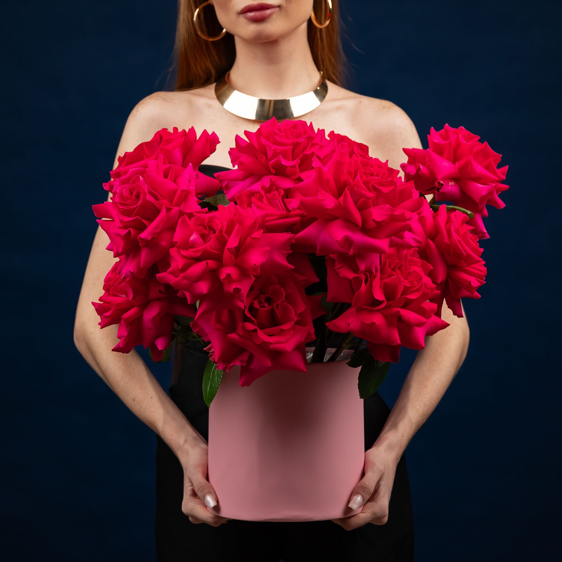 15 французских роз в шляпной коробке (сорт Пинк Флойд)