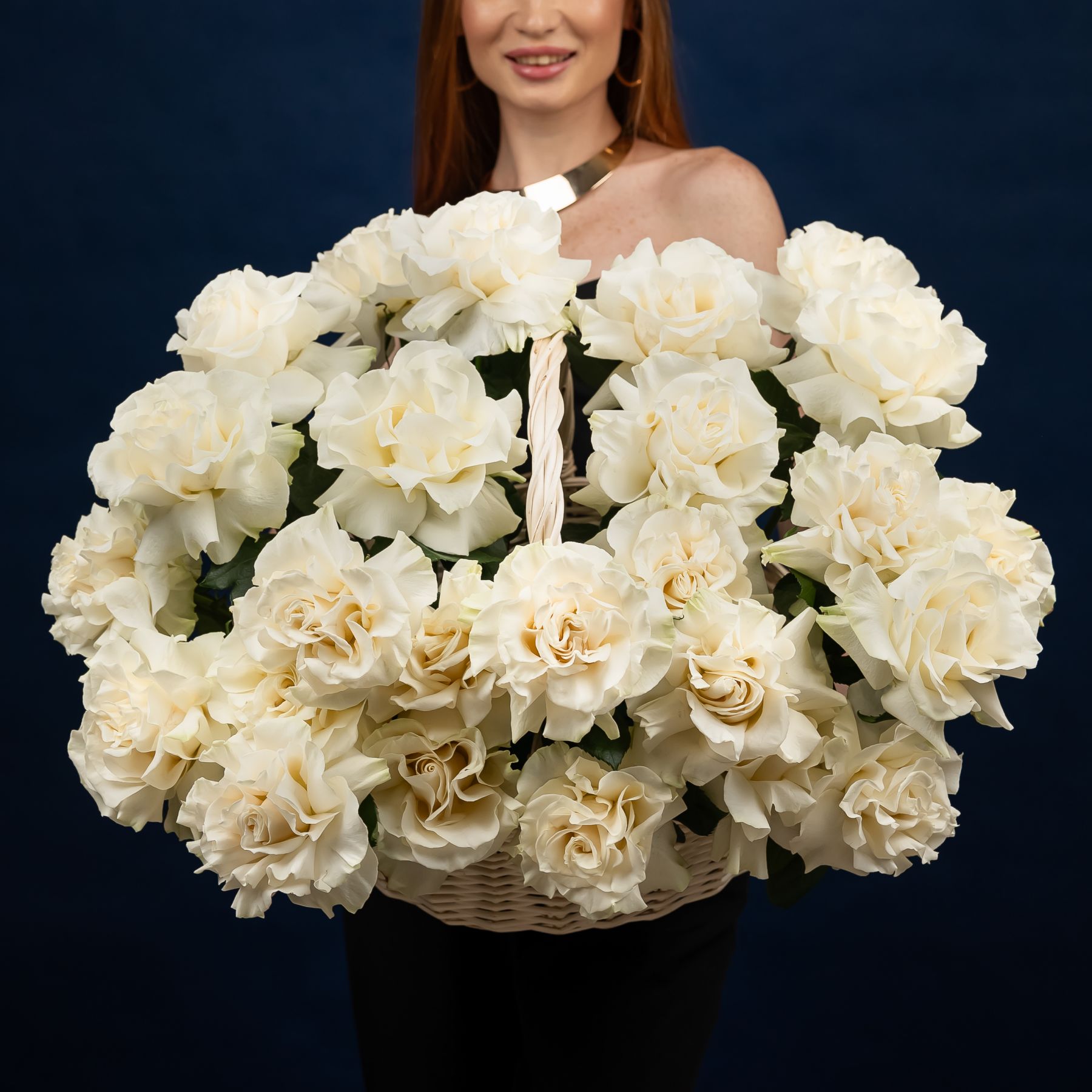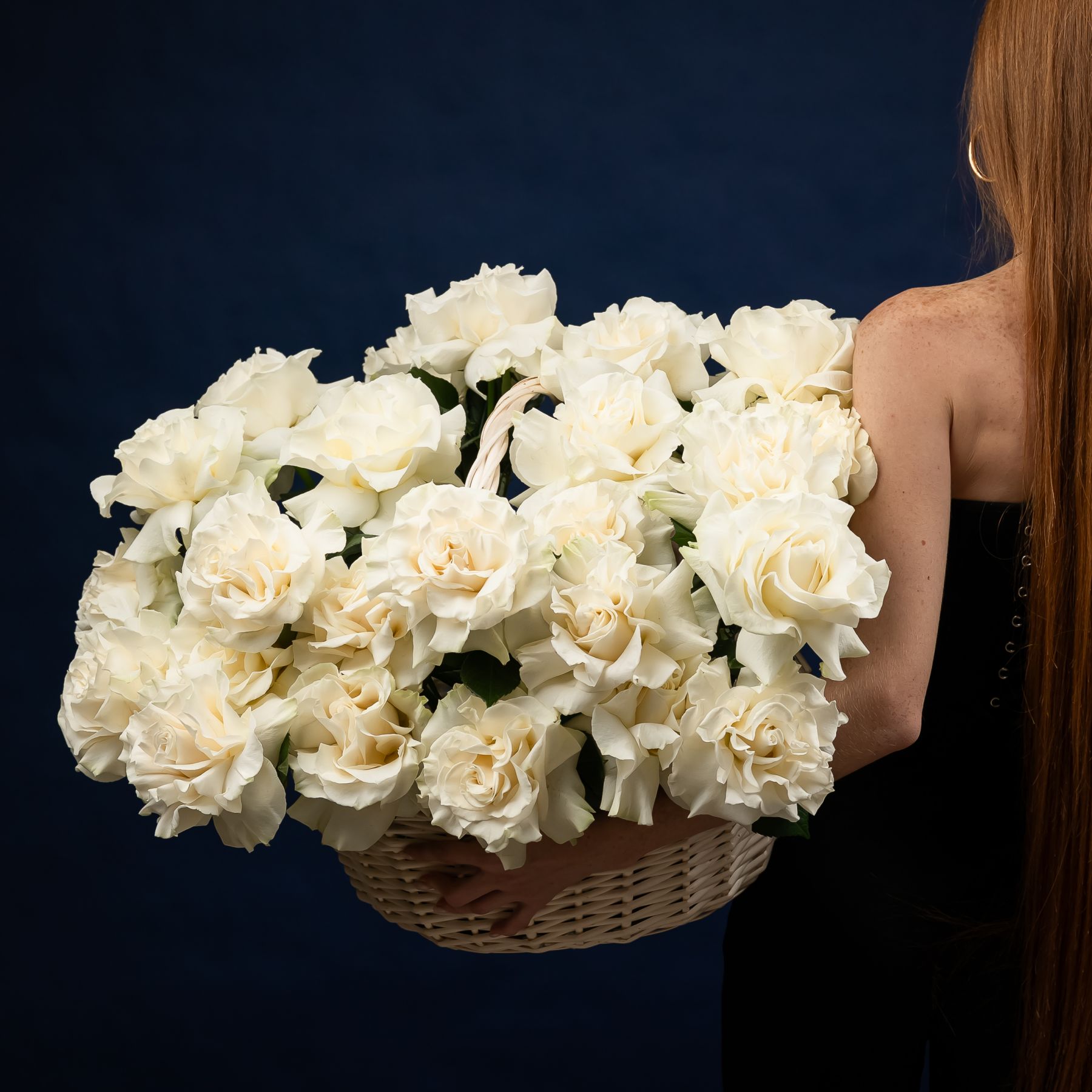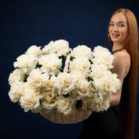 25 Французских роз (Мондиаль) в корзине размер L (40/37)