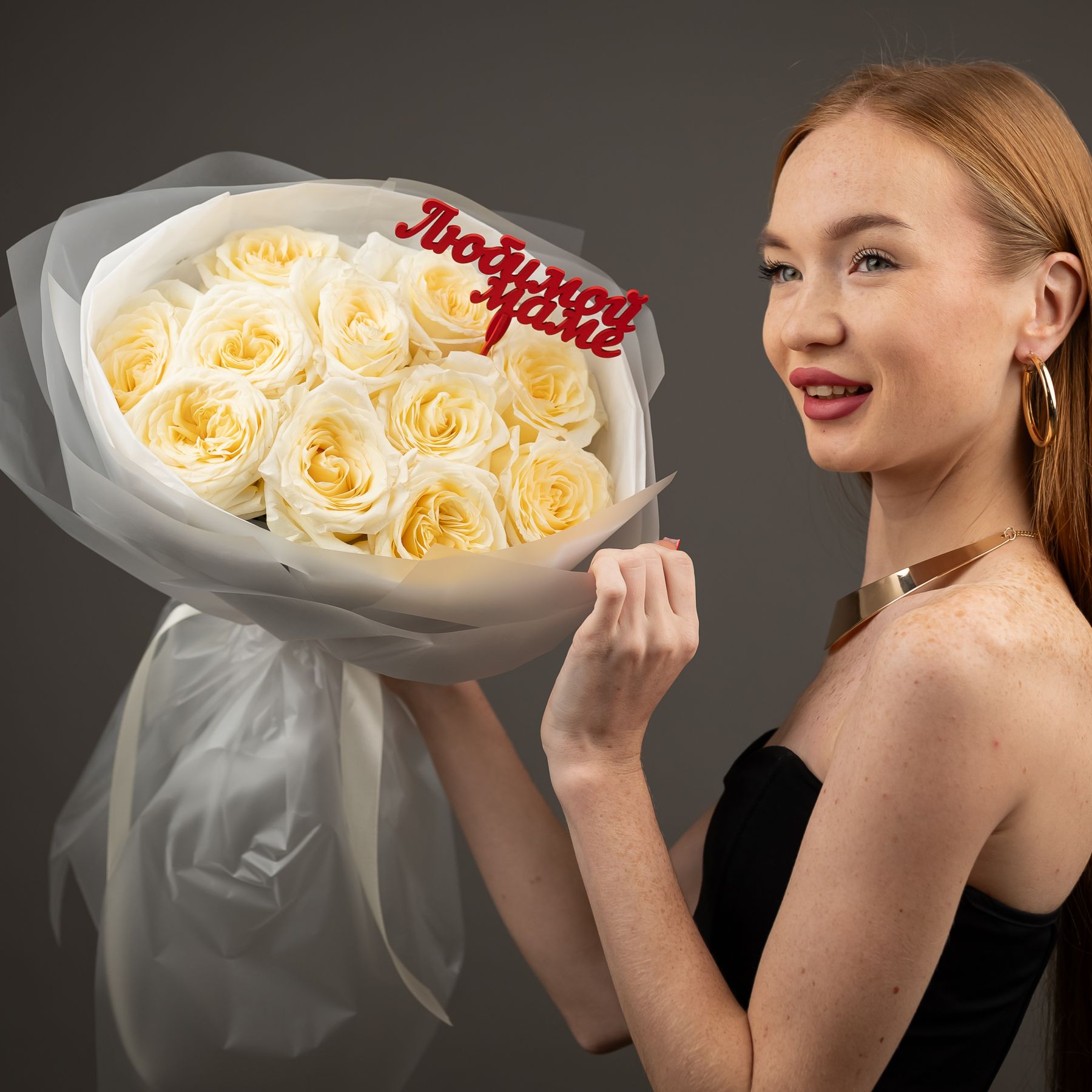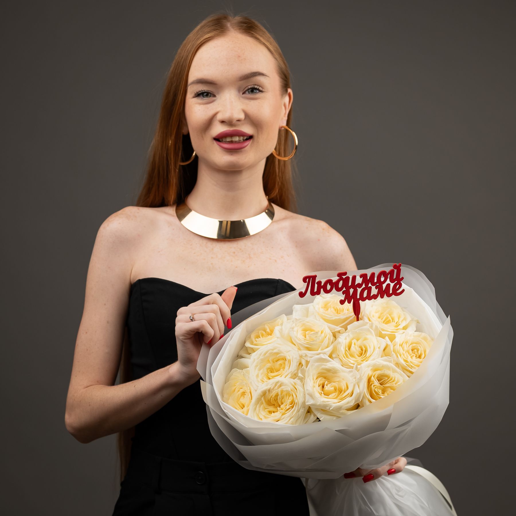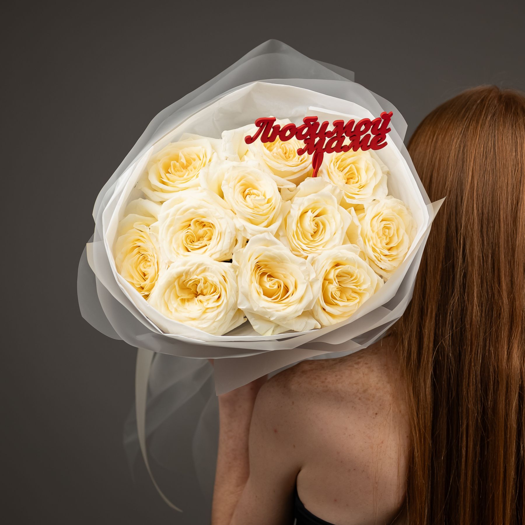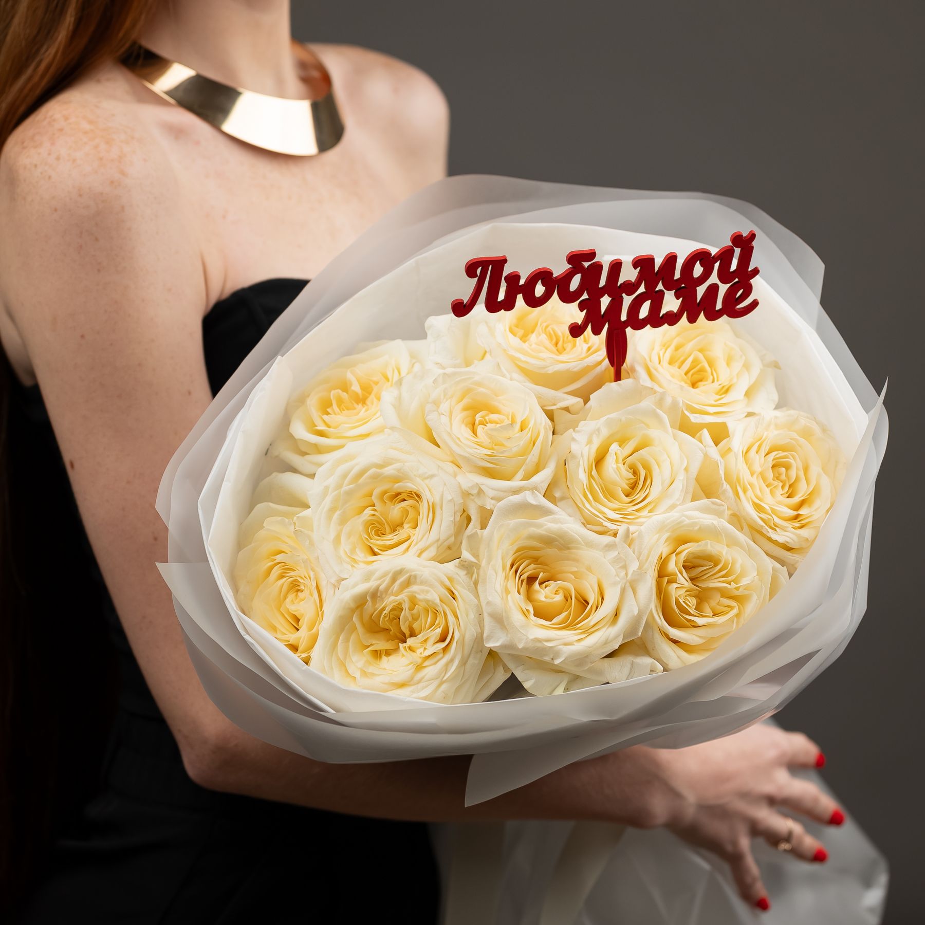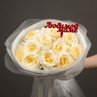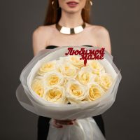 Пионовидная роза 11 шт (кендл лайт)+ топпер "Маме"