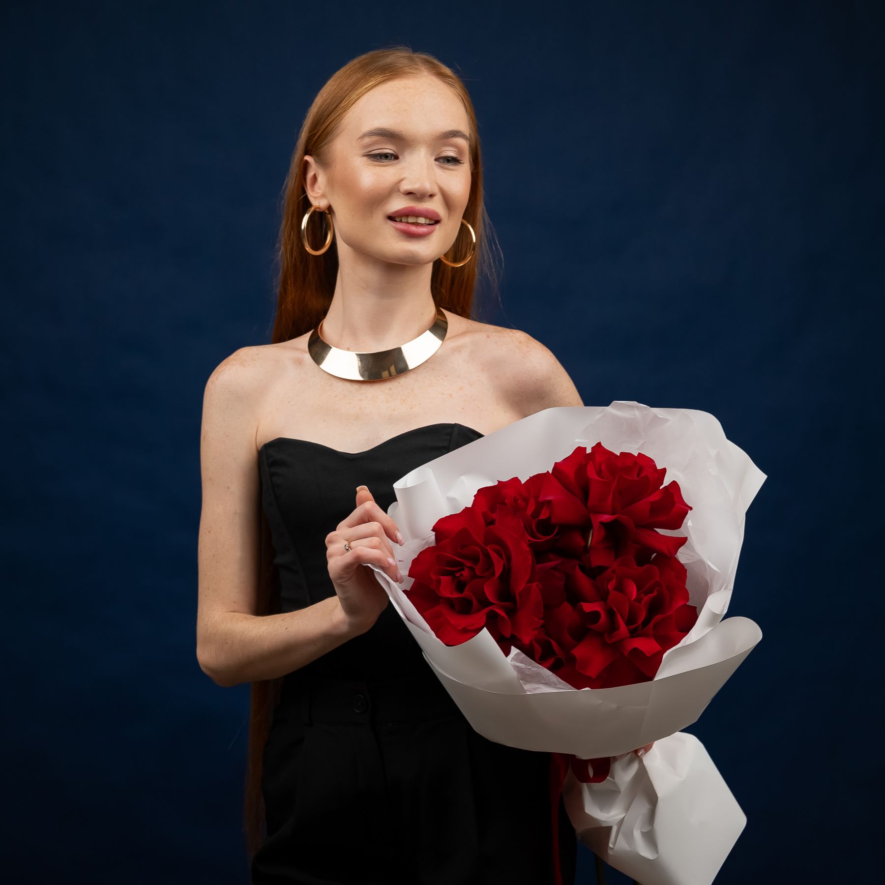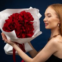 15 французских роз в шляпной коробке (сорт Мондиаль)