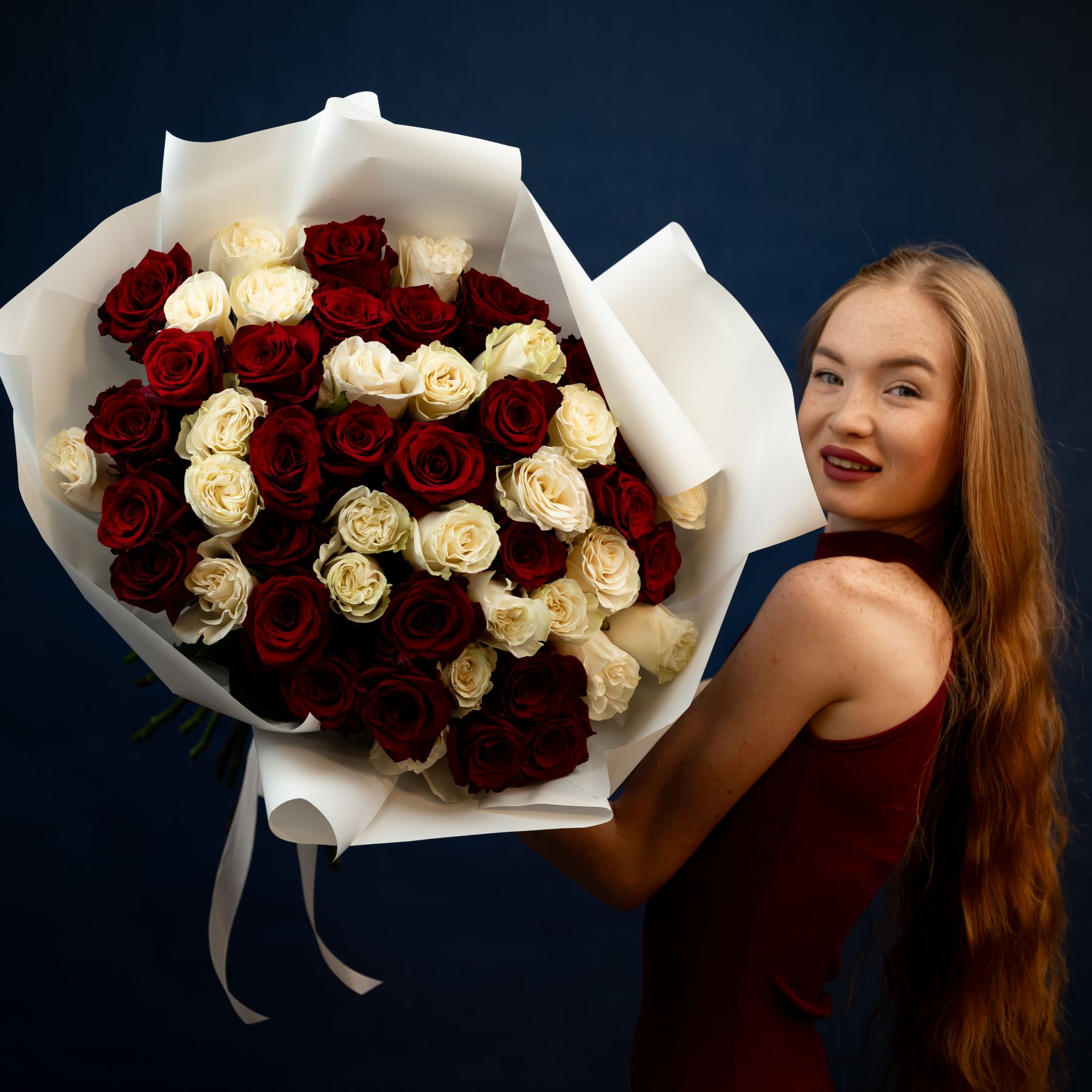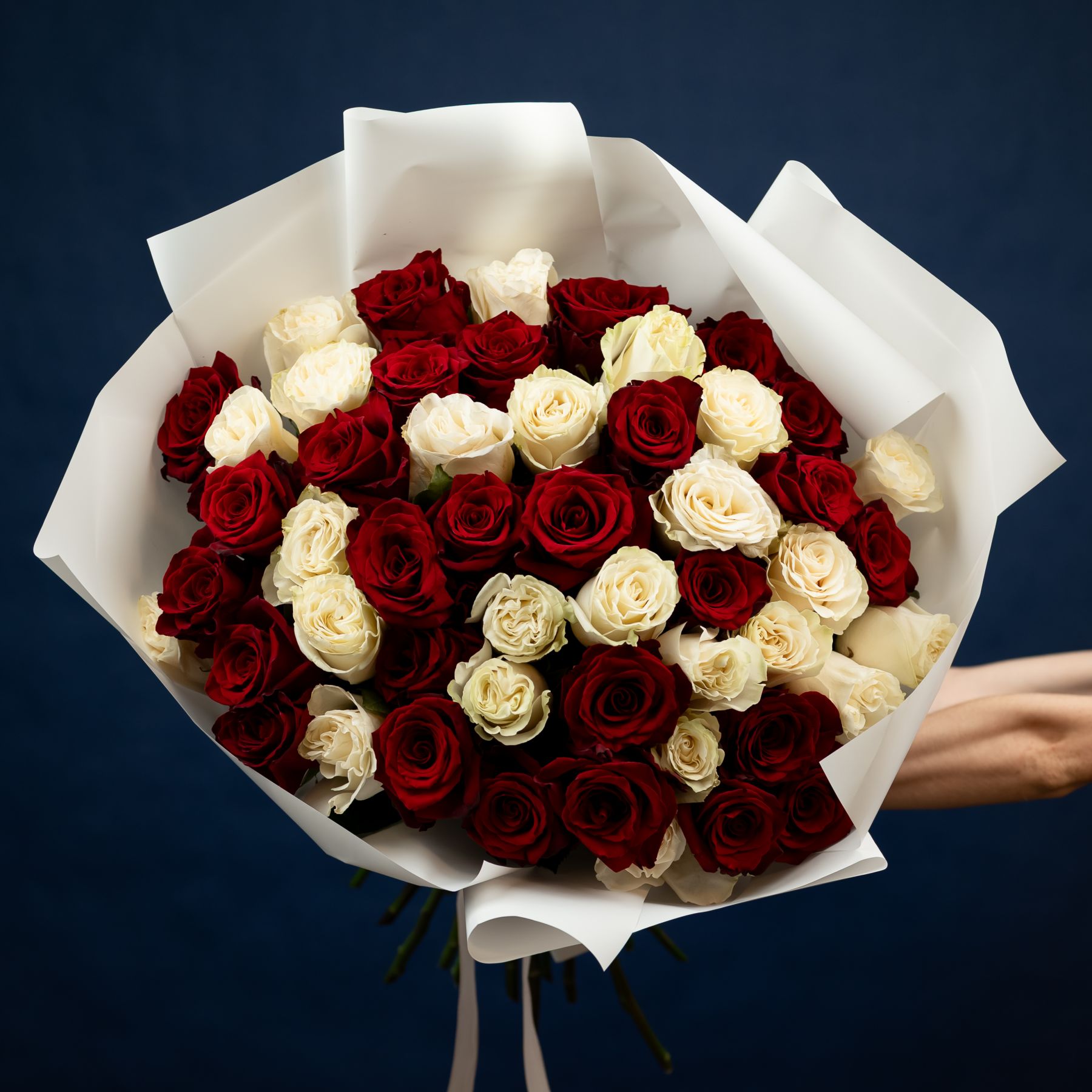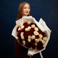 51 красная и белая роза (60см)
