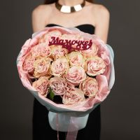 Пионовидная роза 11 шт (кендл лайт)+ топпер "Маме"