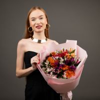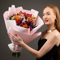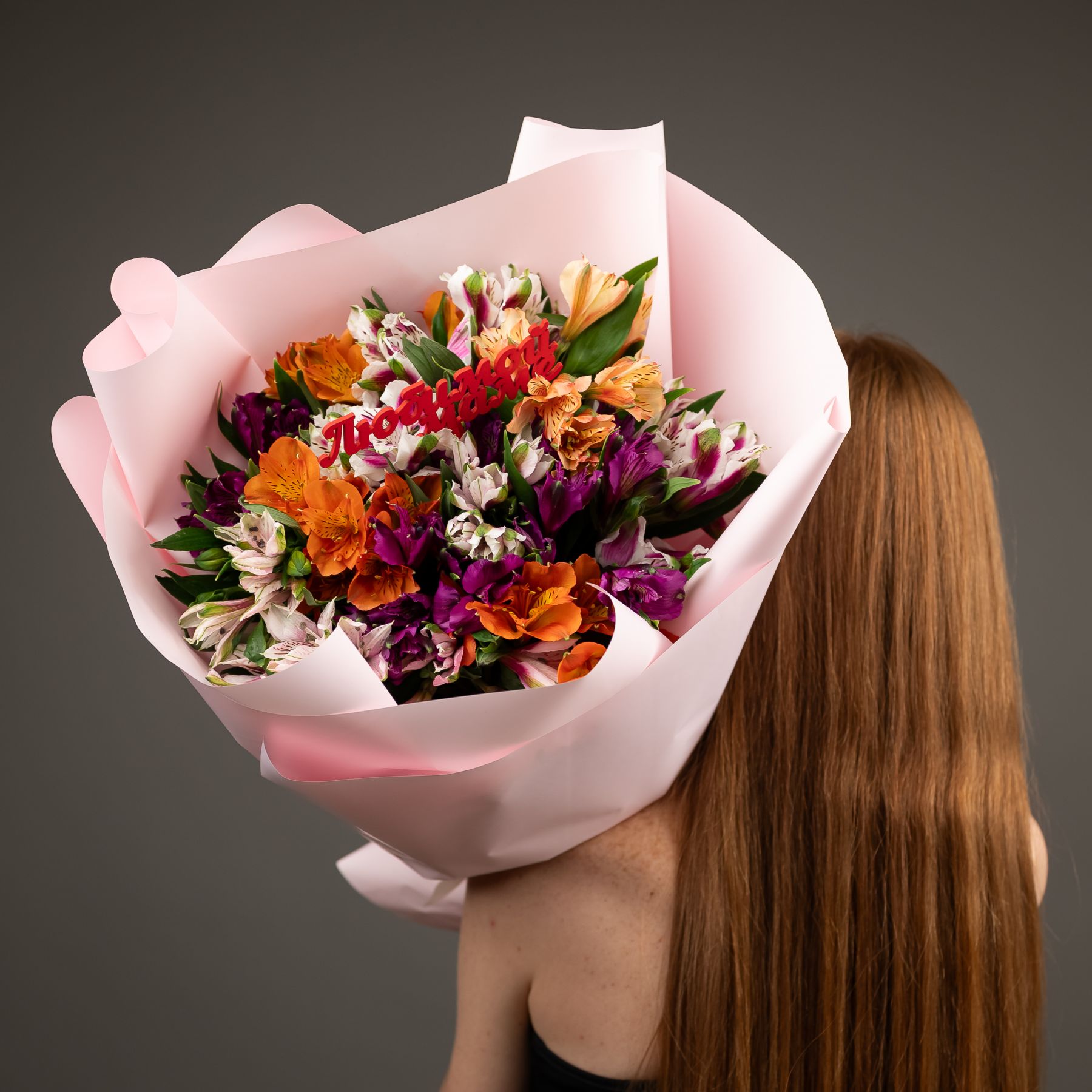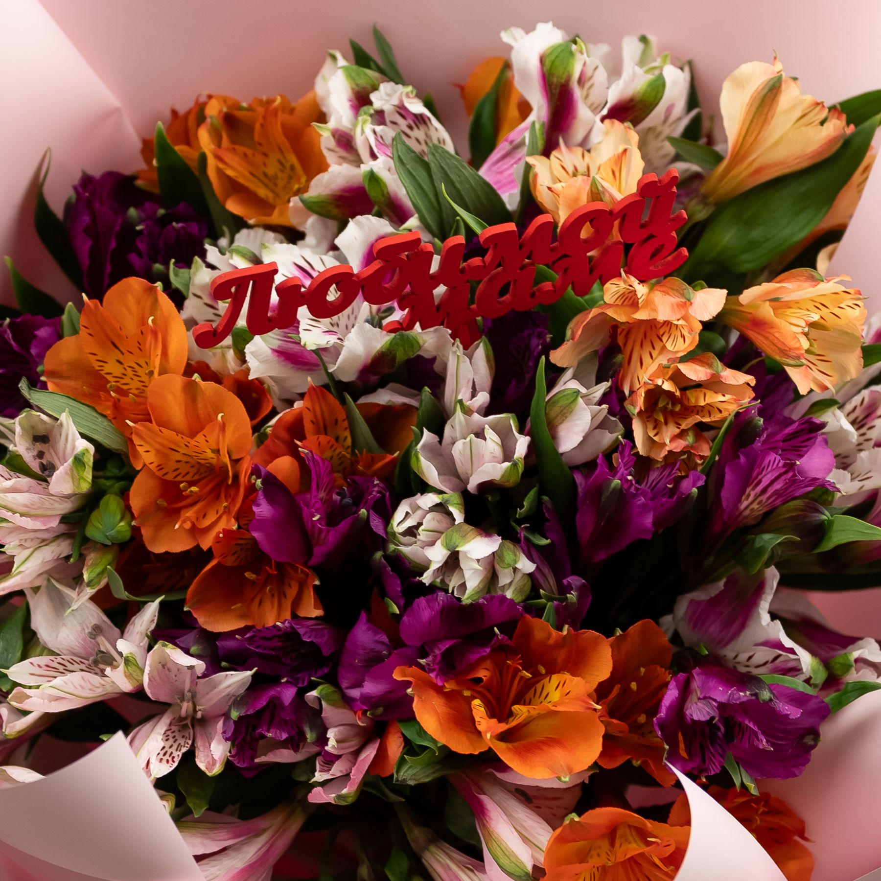 Роза розовая 15 шт (пинк подиаль) + топпер "Маме"