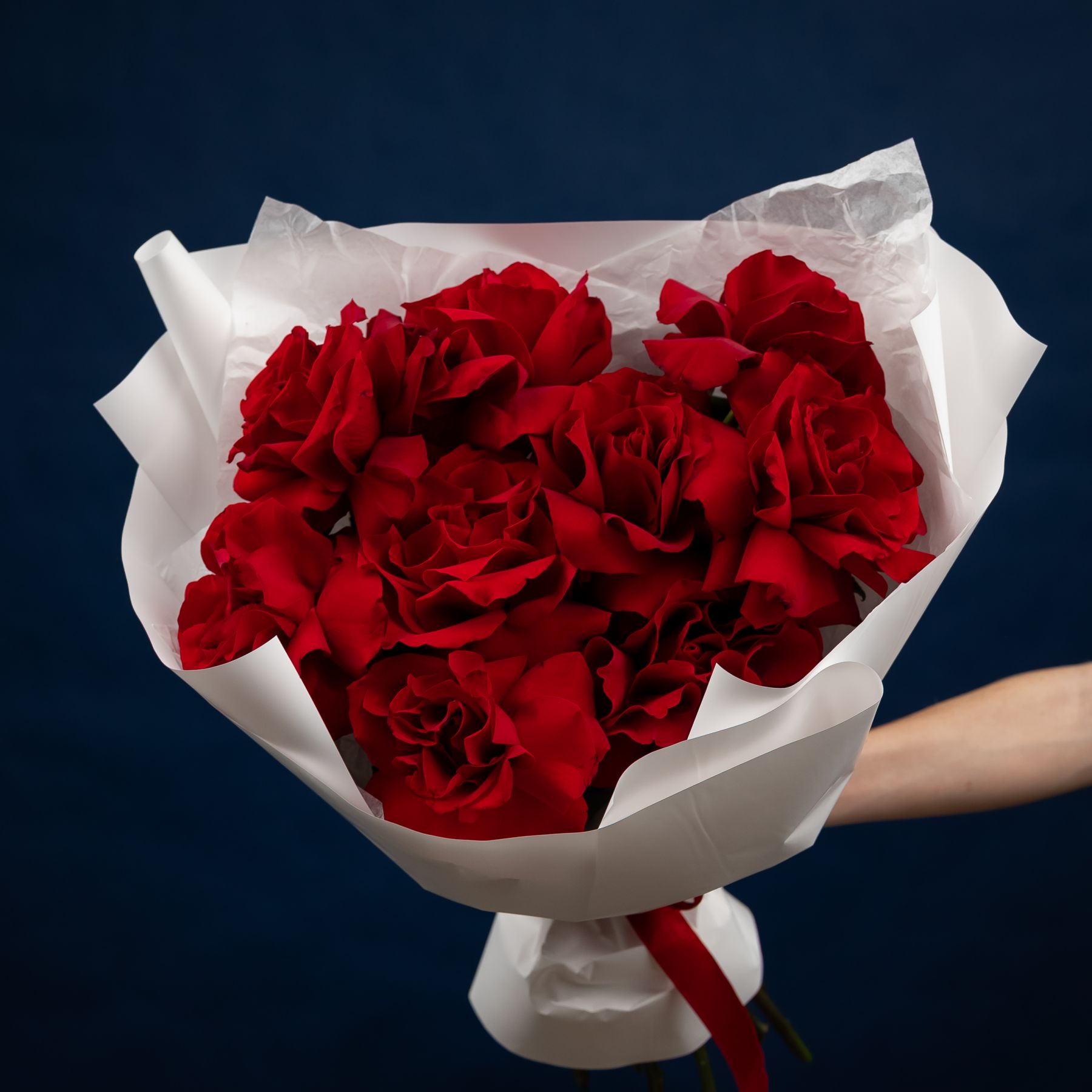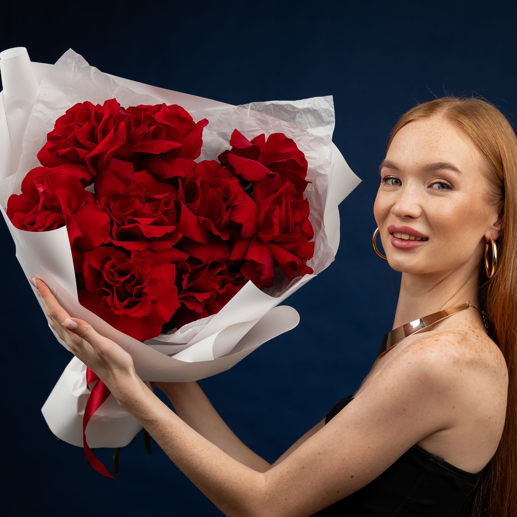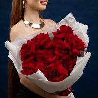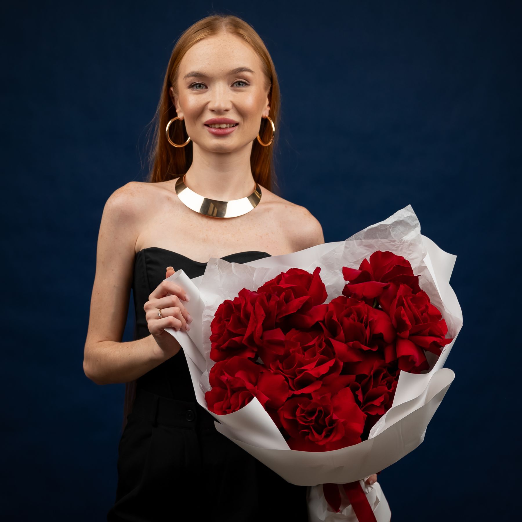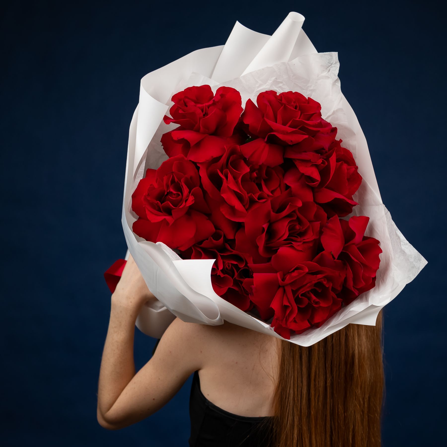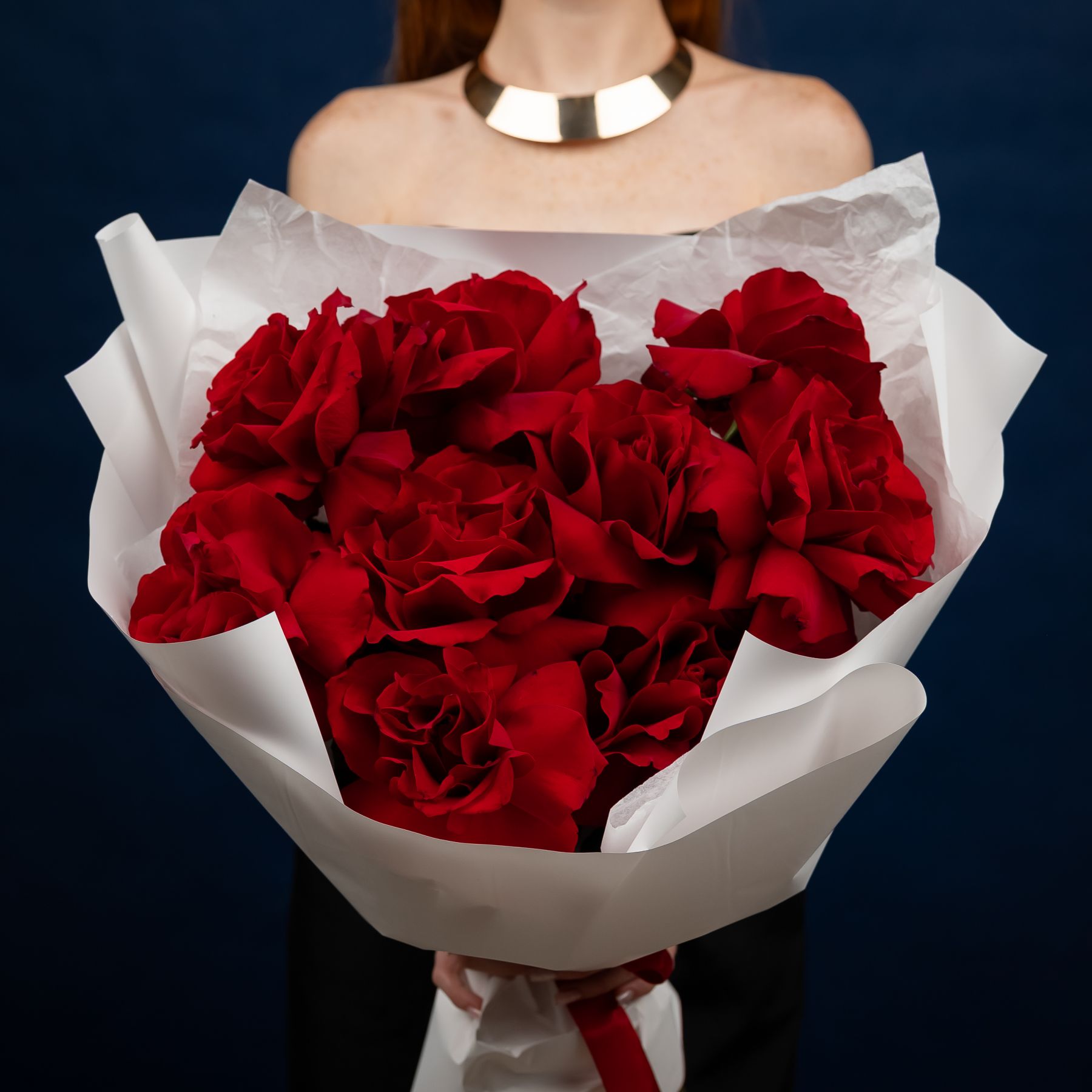 15 французских роз в шляпной коробке (сорт Мондиаль)