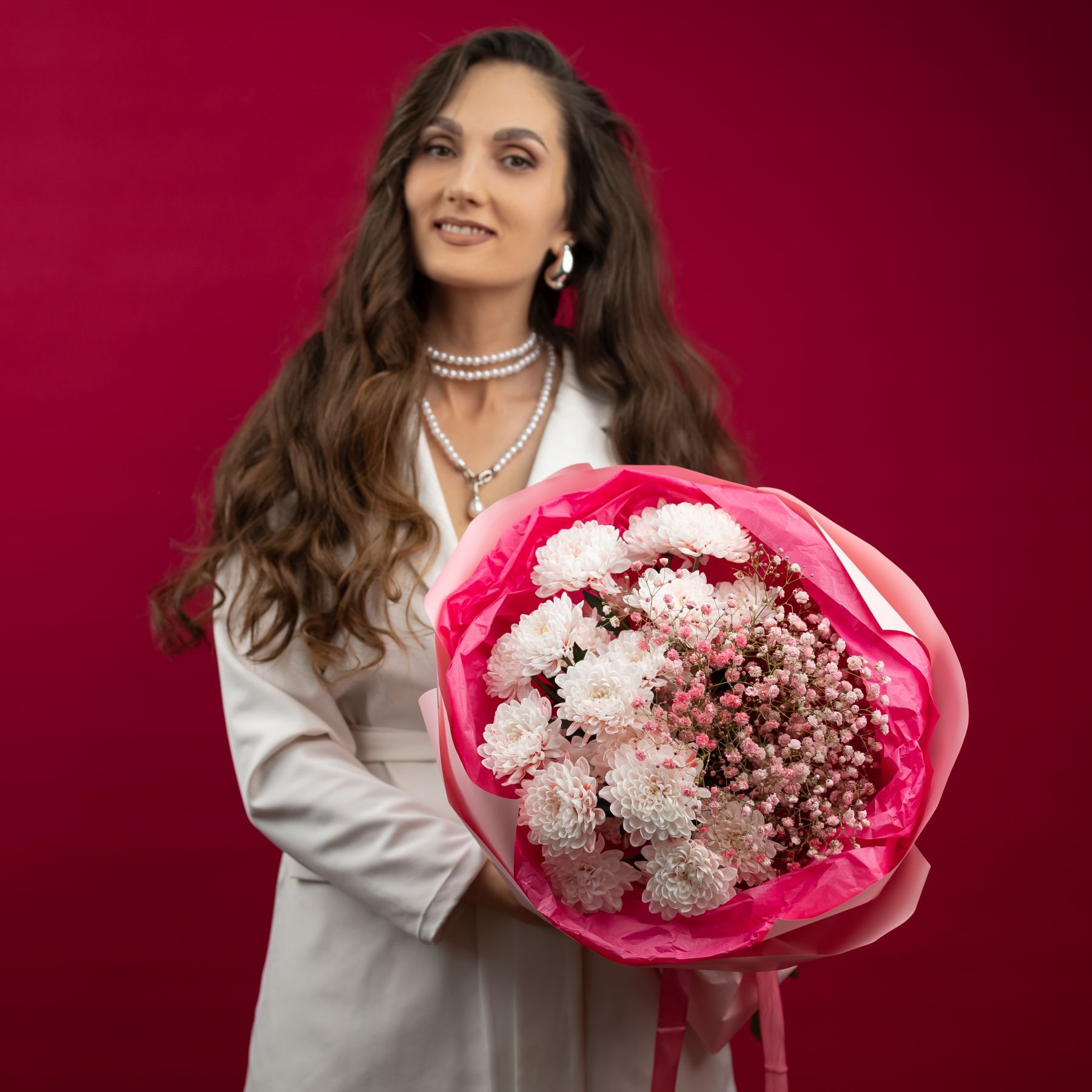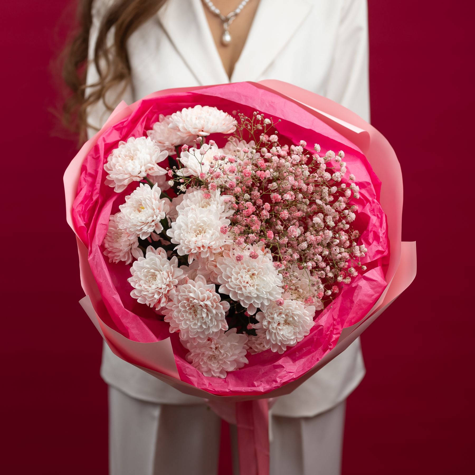 Состав: кустовая хризантема Алтай - 3 шт гипсофила - 3 шт упаковка - 1 шт