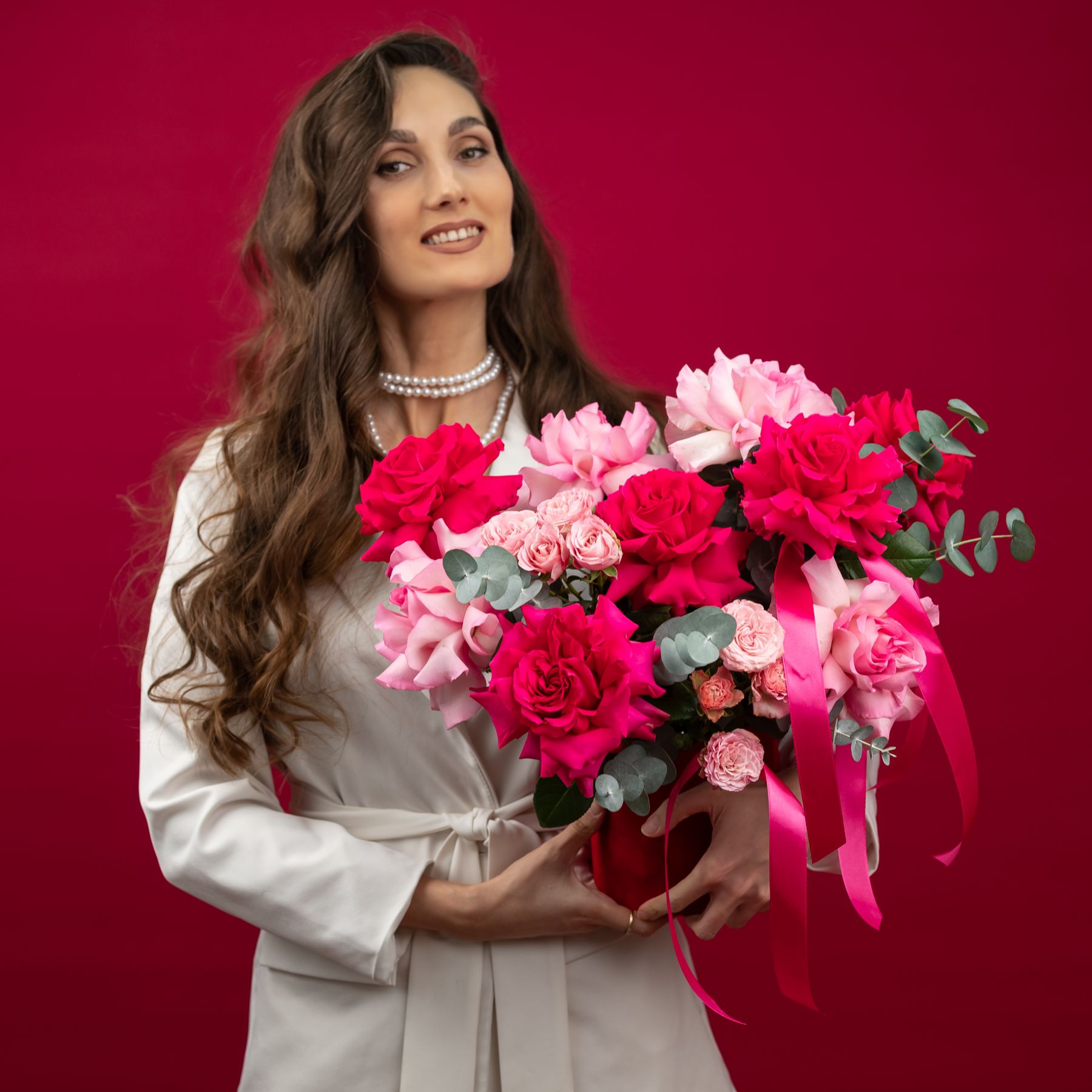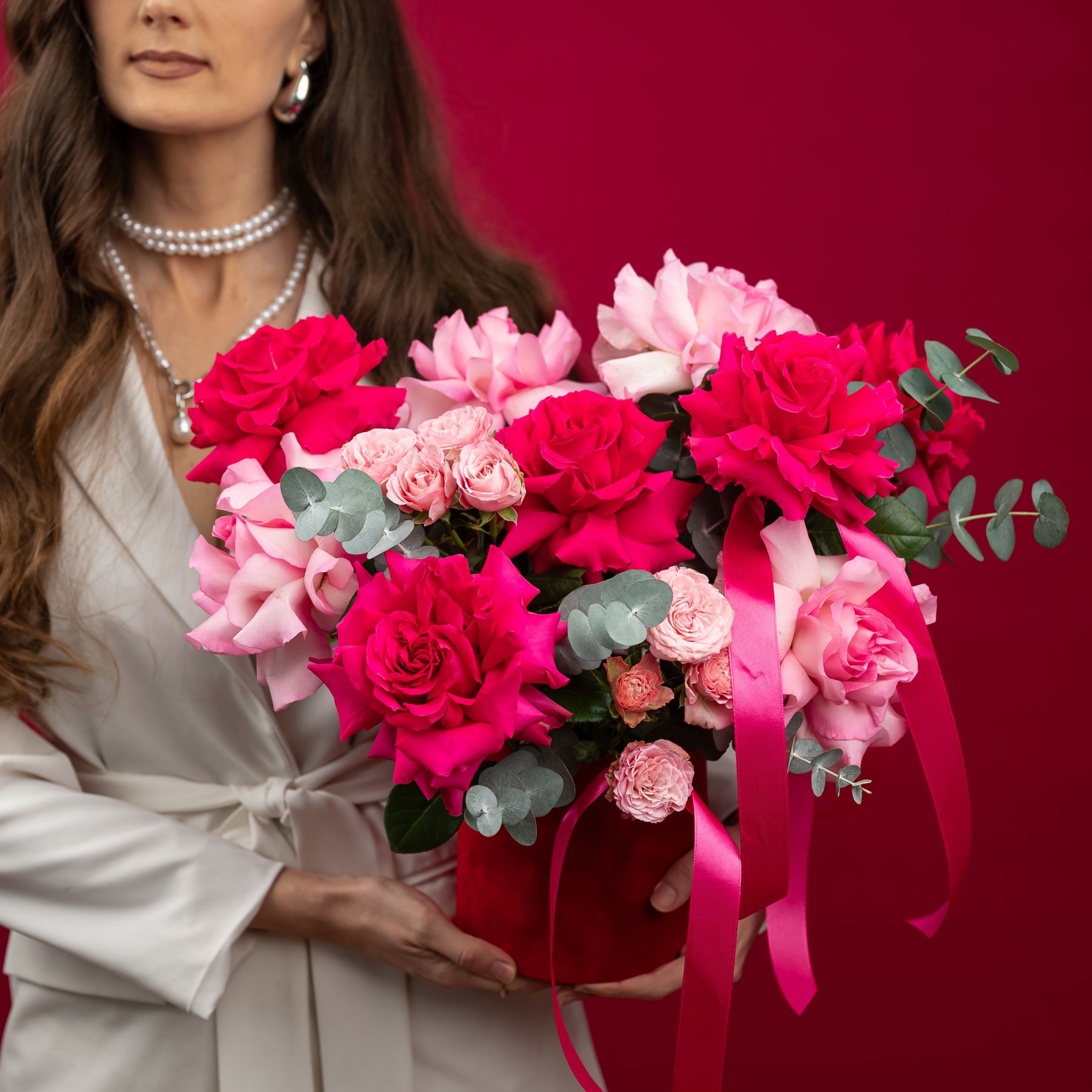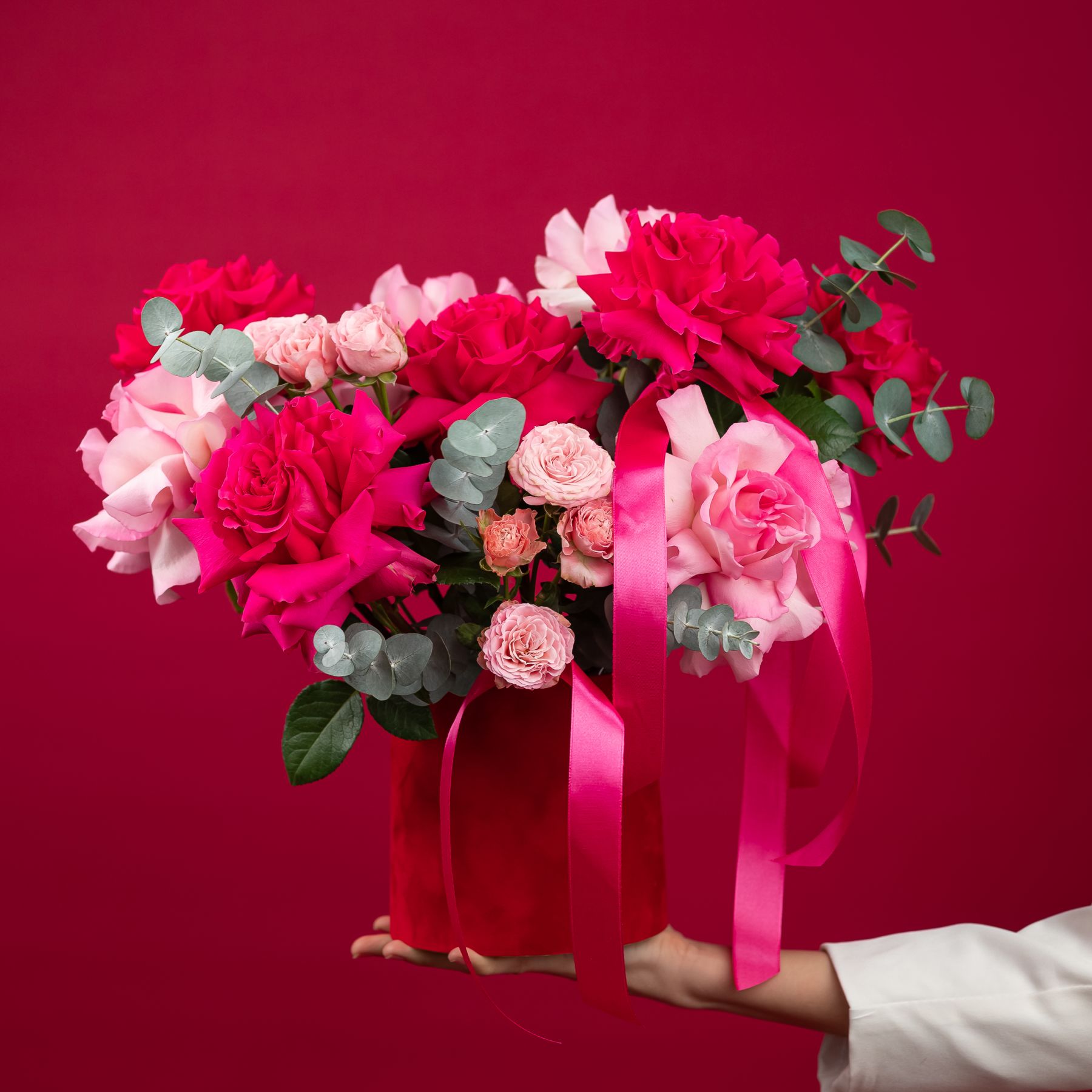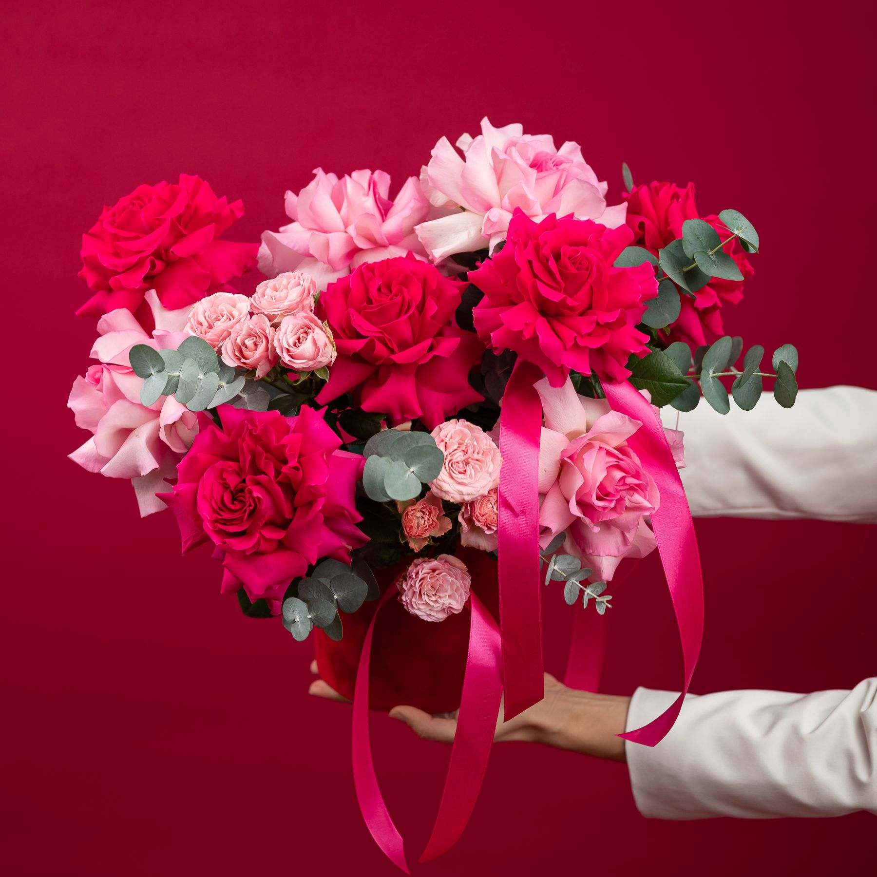 французская розовая роза - 9 шт