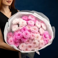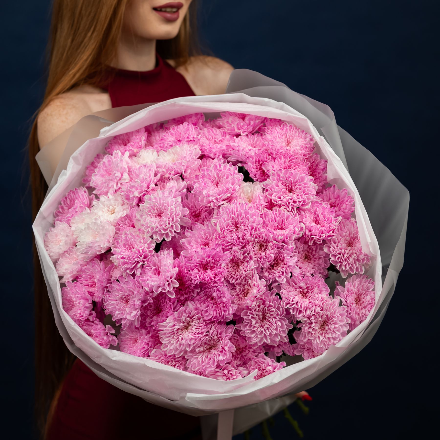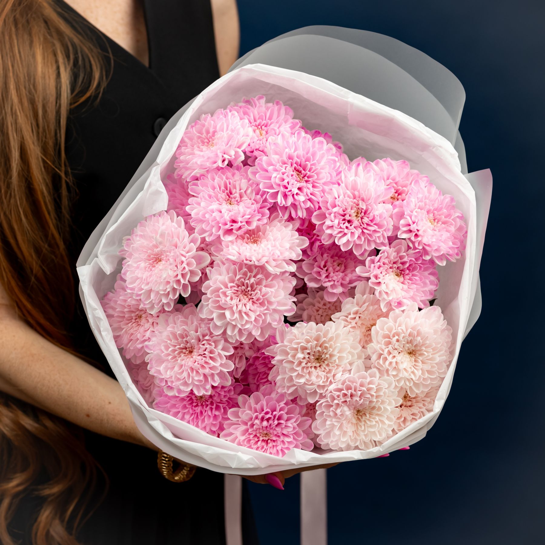 Монобукет из 7 махровых хризантем в нежной упаковке