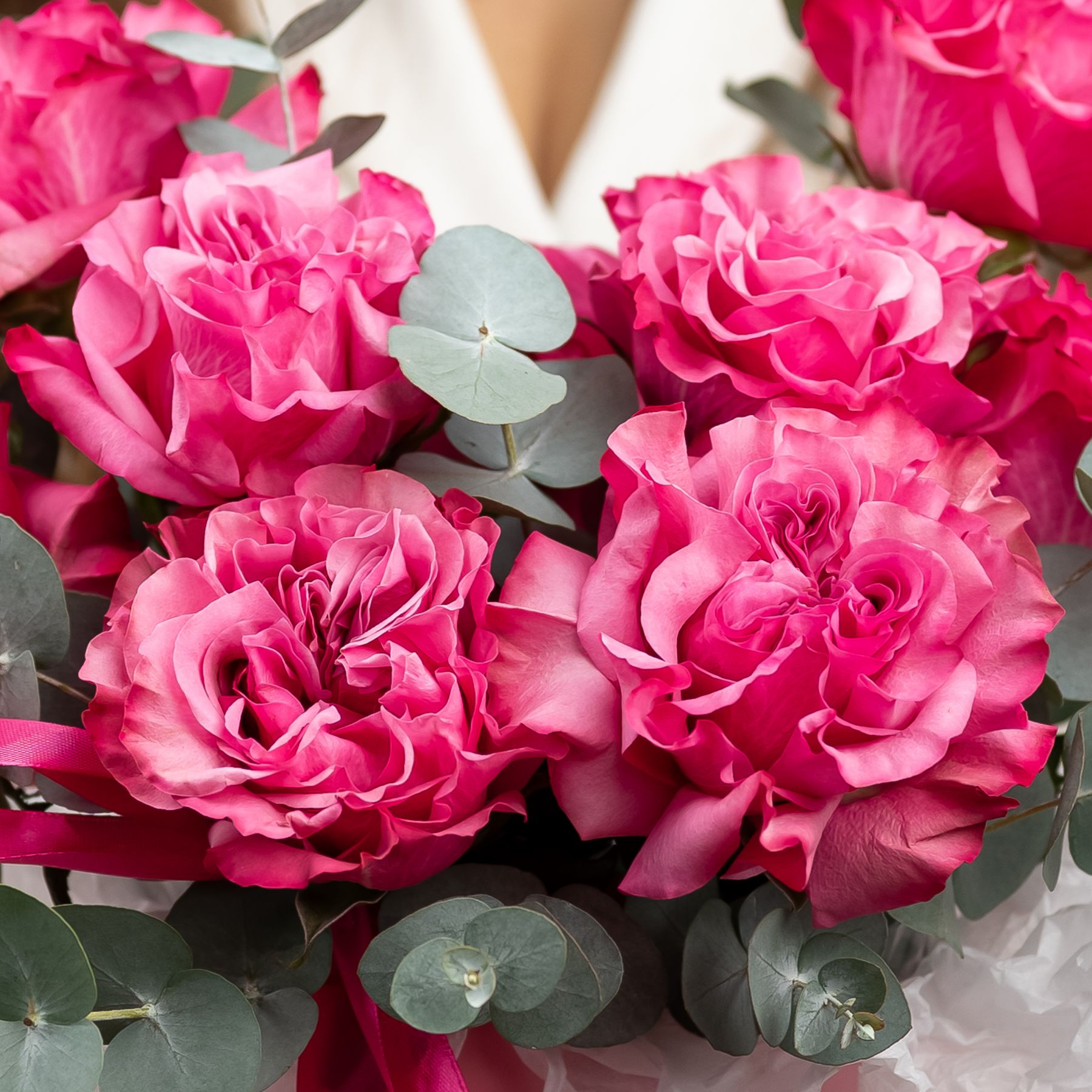 Состав: роза кантри блюз - 9 шт эвкалипт - 5-6 веток шляпная коробка - S