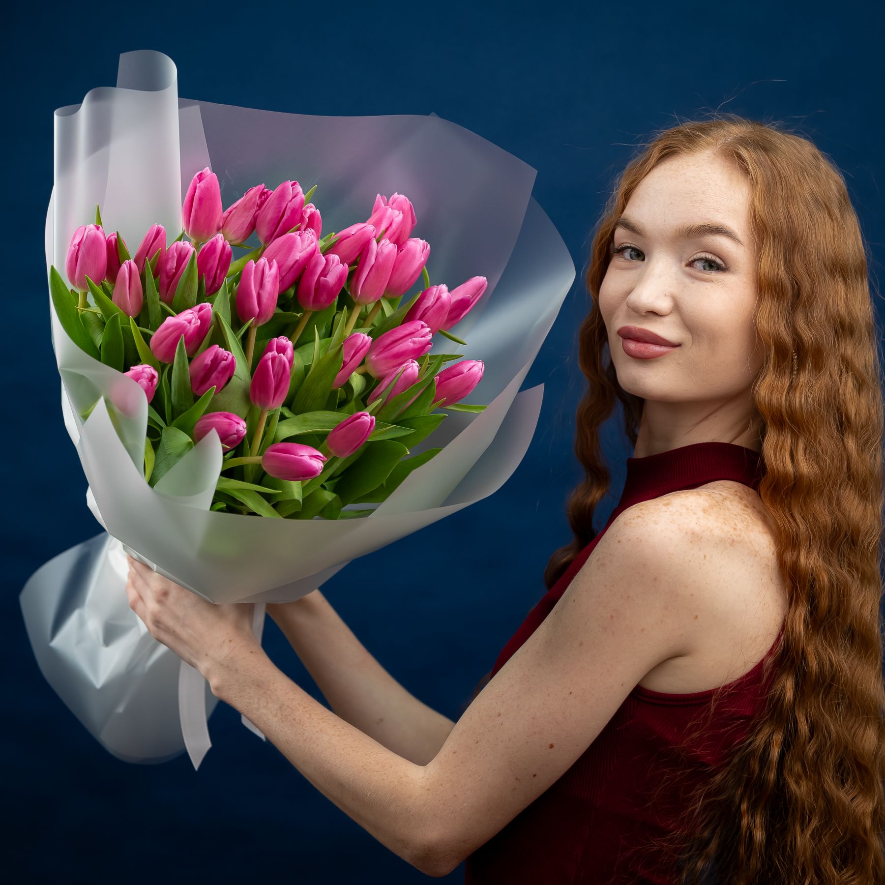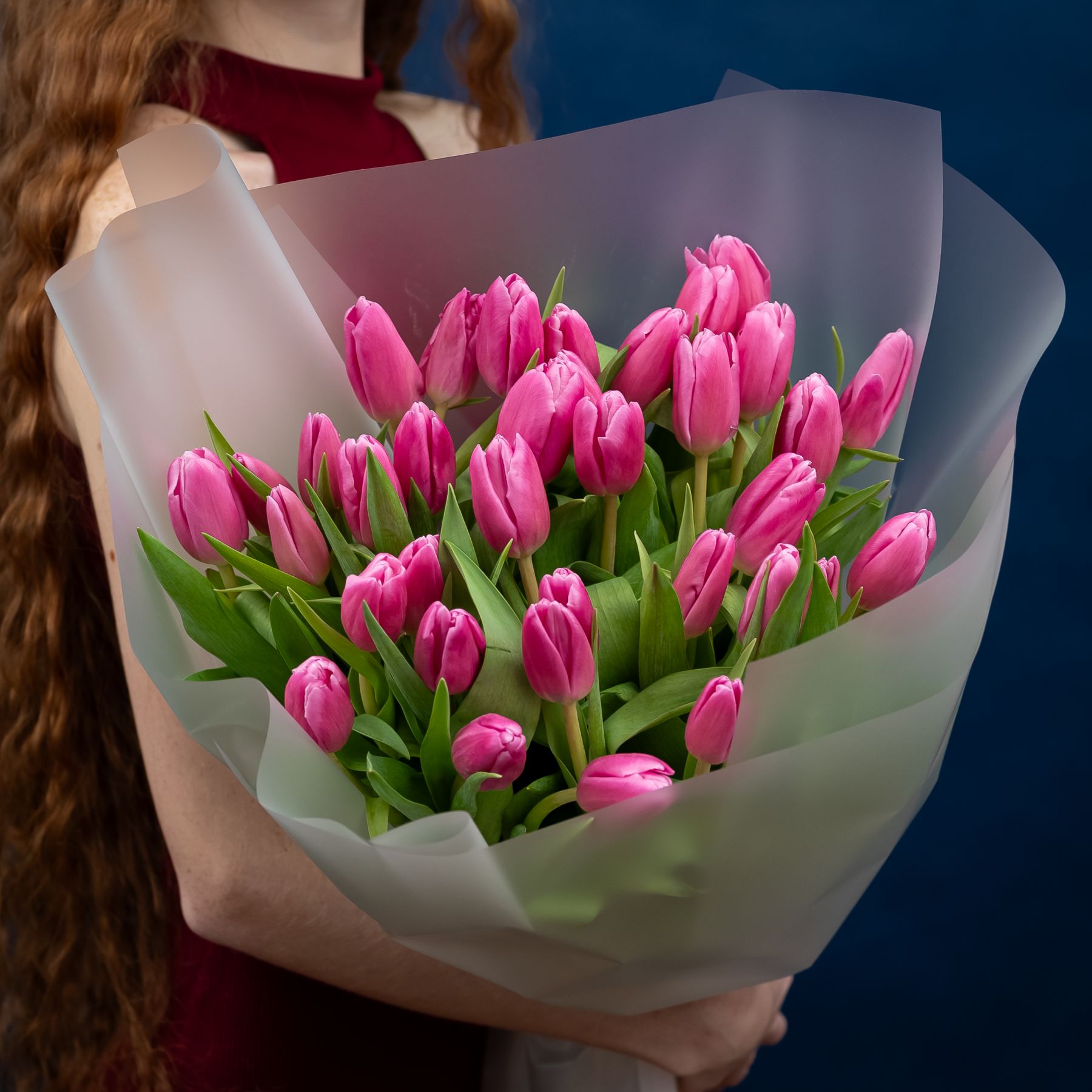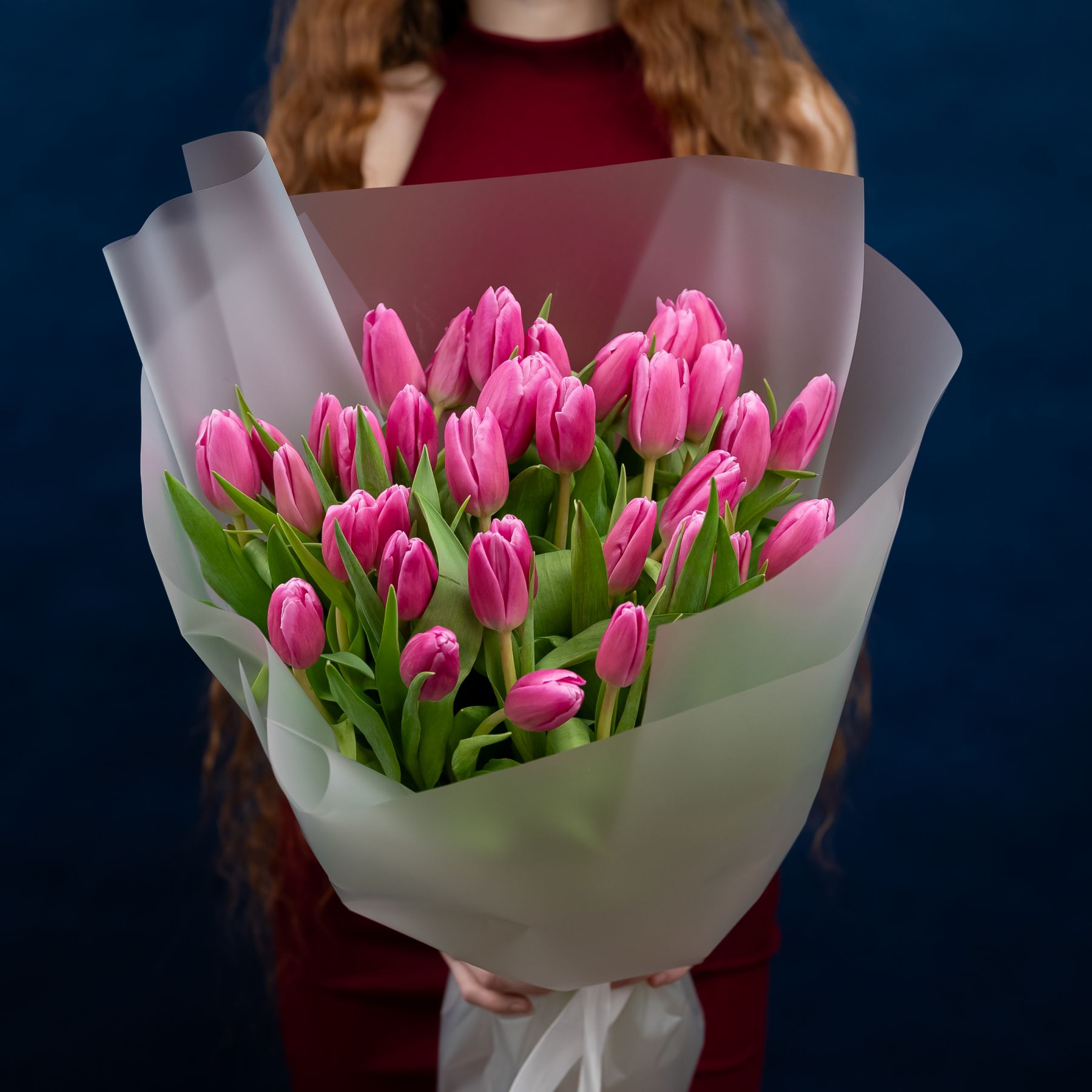 Тюльпаны розовые насыщенные 35шт